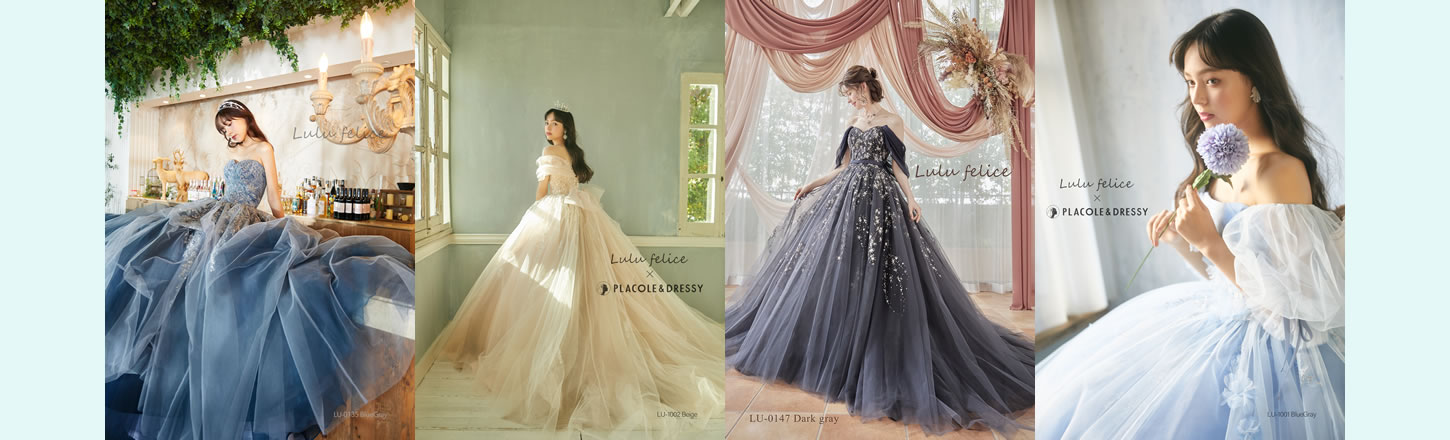 一粒から拘ったグリッターの輝きはLuluFeliceのエッセンス。纏った瞬間に心ときめく憧れの花嫁姿を叶えます。