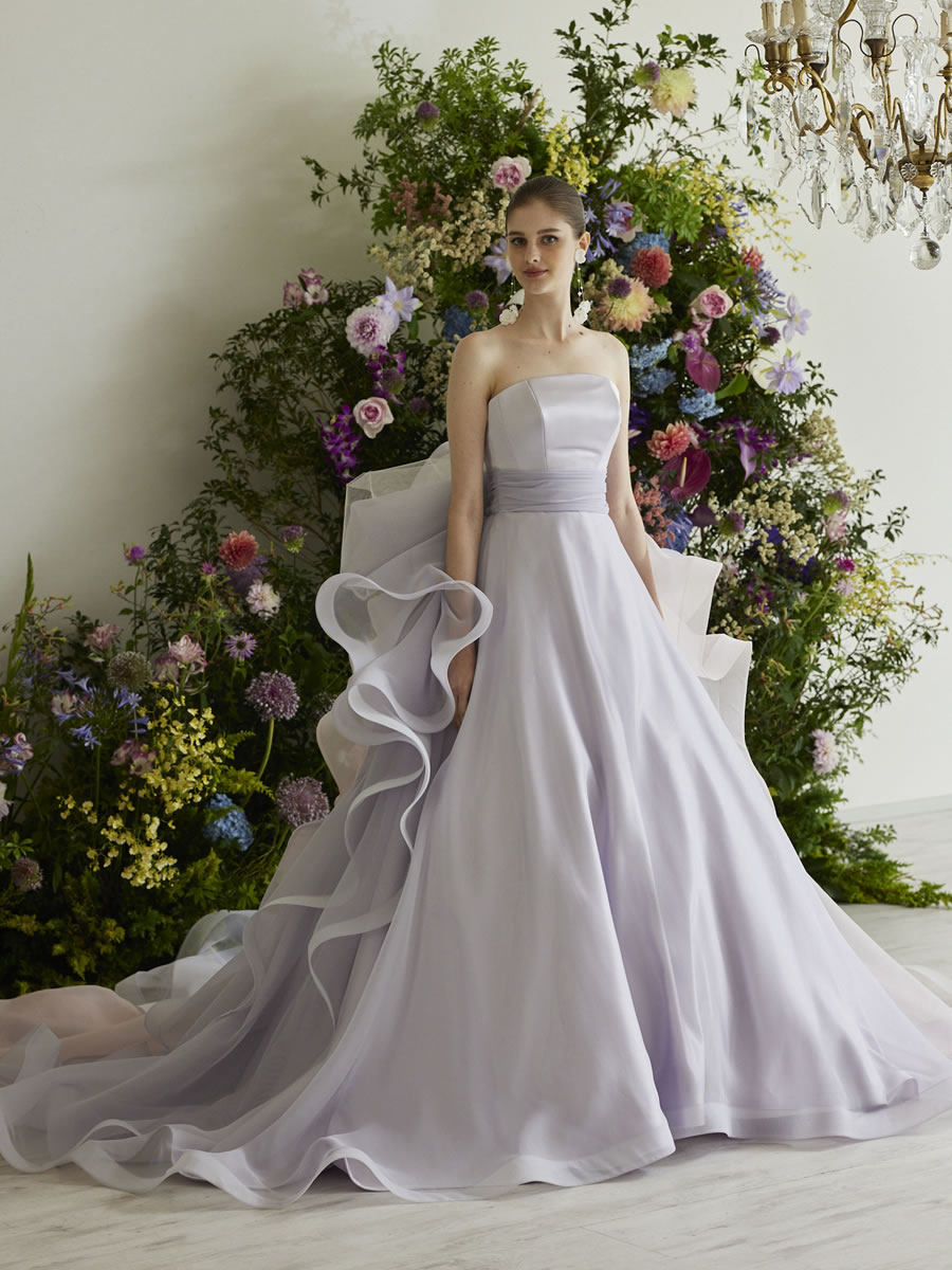 サテン生地と透け感が綺麗なメッシュオーガンジーを重ね合わせてるので、優美な輝きが浮かび上がります。