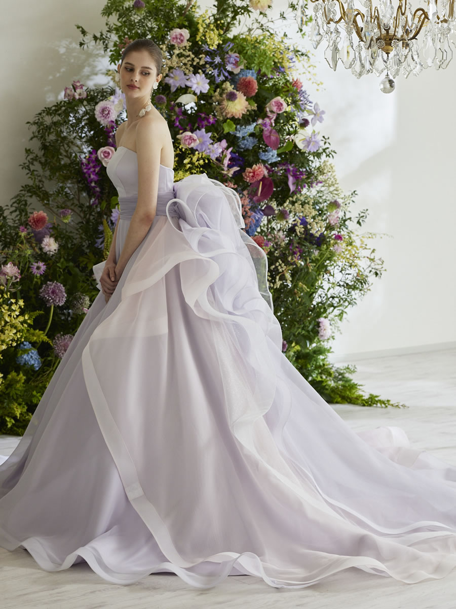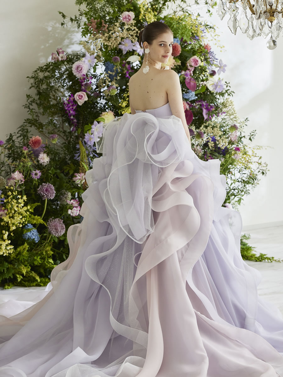 バックスタイルは、ラベンダーとピンクのコントラストに、キラキラと上品に輝く繊細なラメチュールを組み合わせているので、動くたびに優美な輝きが浮かびあがり、神私的でとてもメルヘンティック♡