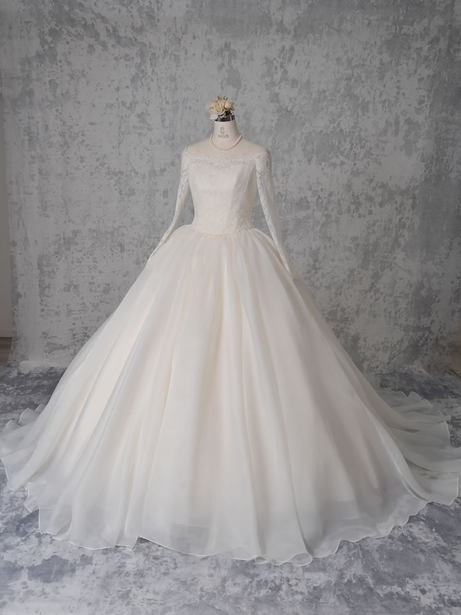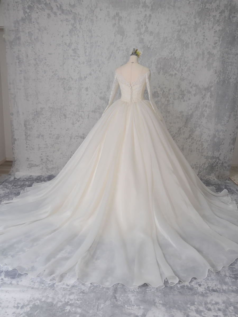 スカートは、国産のサテンオーガンジをふんだんに使用することでウエスト回りから裾もボリューム感溢れています。