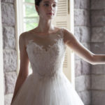 身頃のレースは、フランス製リバーレースと立体的なフランス製コードリバーレースのスカラップを使用した上品なドレスです。